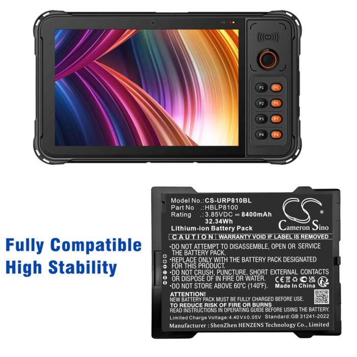 Replacement Battery for Urovo P8100, HBLP8100, Lithium-ion 8400mAh