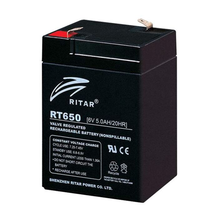 RITAR AGM Batteri 6V 5AH (70x47x101/107mm) F1