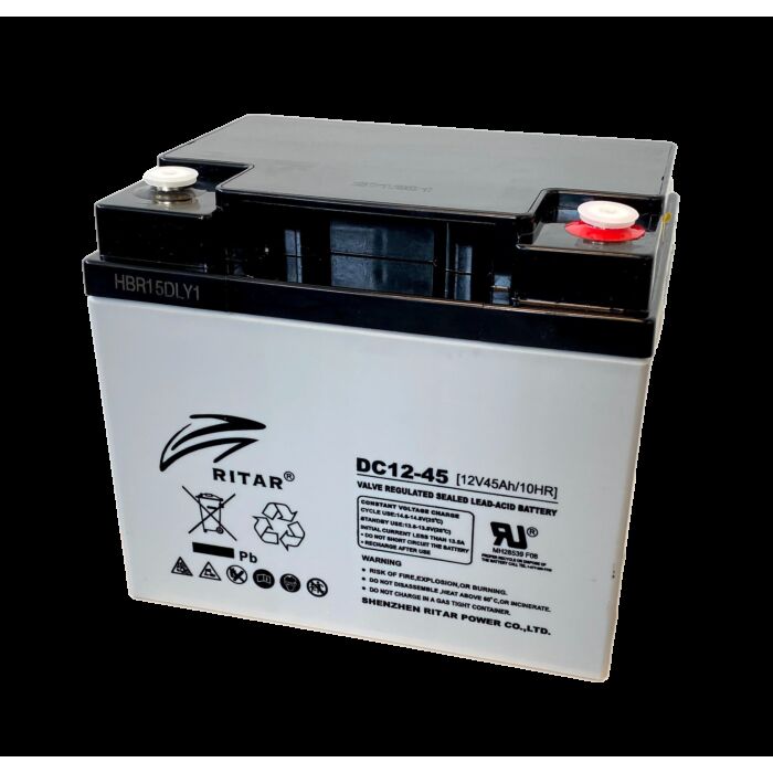 RITAR AGM Deep Cycle Batteri 12V 45AH (197x165x169mm) Polstilling 5 - Plusspol høyre