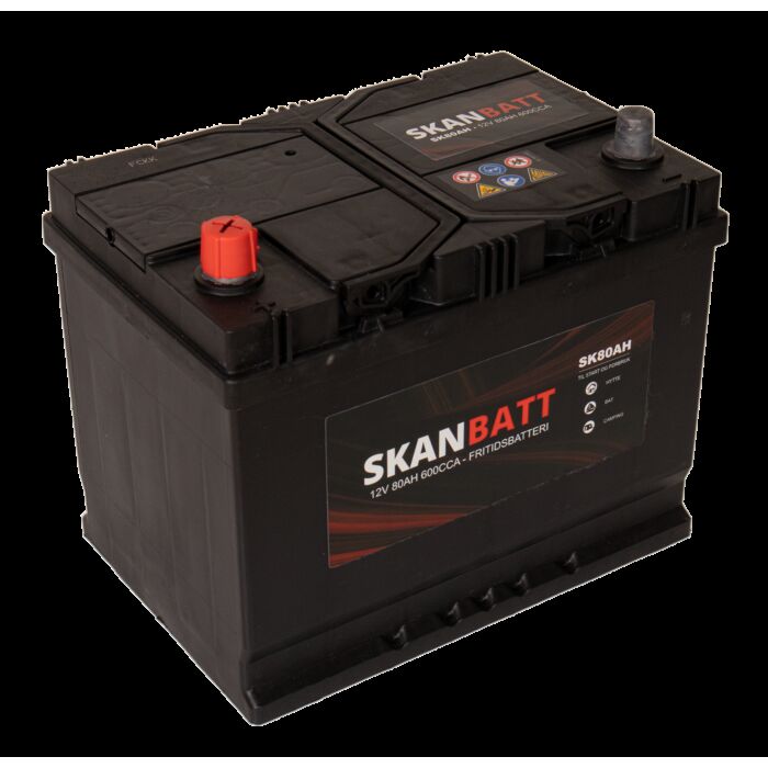 SKANBATT Fritidsbatteri 12V 80AH 600CCA (256x174x205/225mm) Polstilling 4 - Plusspol til venstre