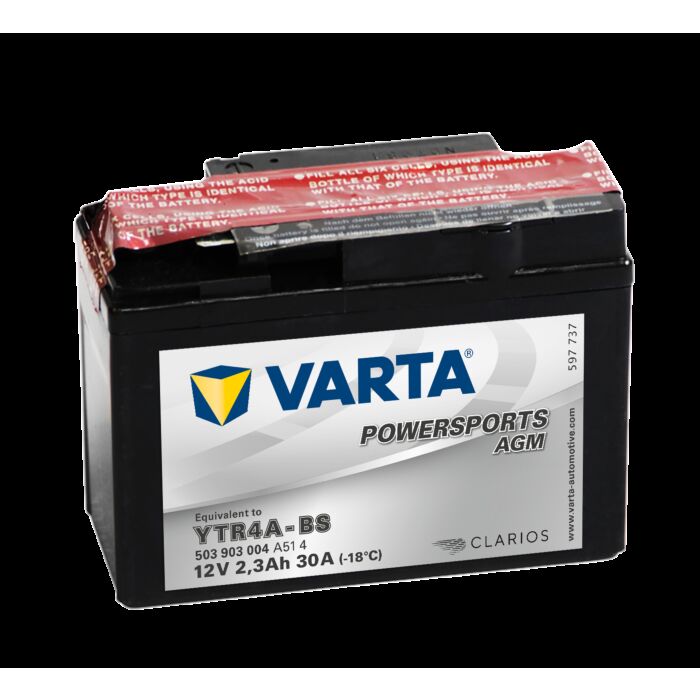 VARTA AGM MC Batteri 12V 2,3AH 30CCA (113x49x85mm) Polstilling 5 - Plusspol til høyre YTR4A-BS