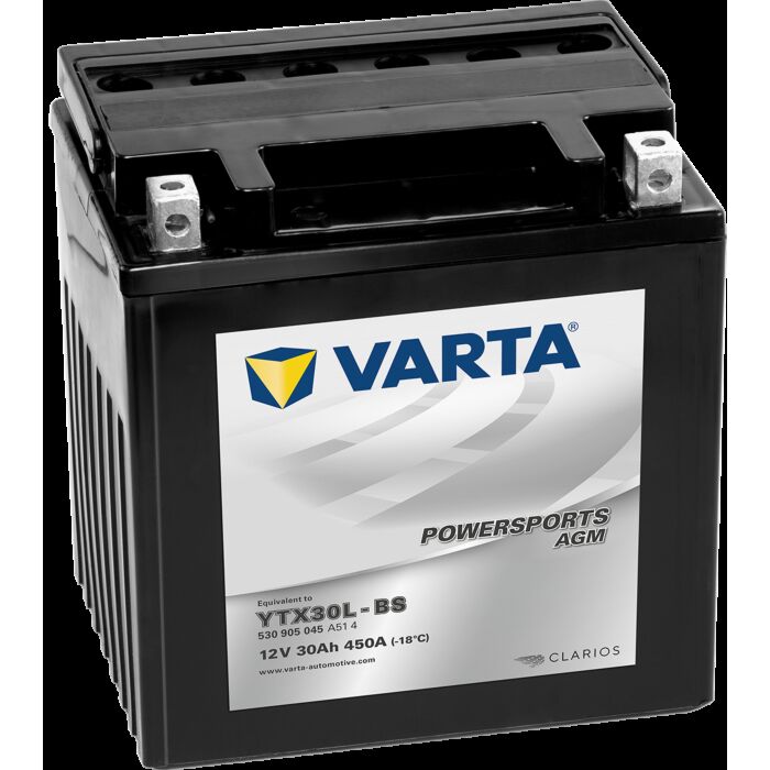 VARTA AGM MC Batteri 12V 30AH 450CCA (166x127x175mm) Polstilling 5 - Plusspol til høyre YTX30L-BS