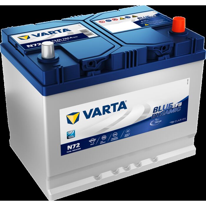 VARTA Blue Dynamic EFB Batteri 12V 72AH 760CCA (261x175x220mm) Polstilling 5 - Plusspol til høyre N72
