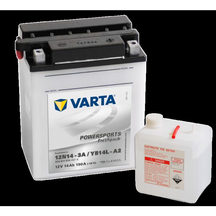 VARTA MC Batteri 12V 14AH 190CCA (135x90x167mm) Polstilling 5 - Plusspol til høyre YB14L-A2