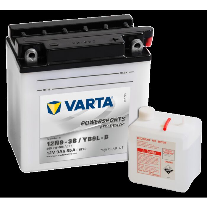 VARTA MC Batteri 12V 9AH 85CCA (136x76x140mm) Polstilling 5 - Plusspol til høyre YB9L-B