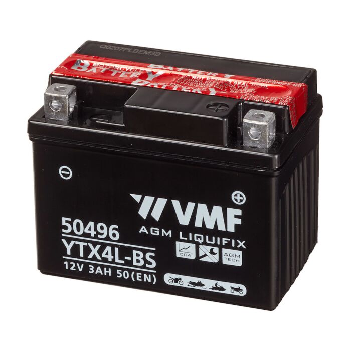VMF MC Batteri 12V 4AH 40CCA (114x71x86) Polstilling 5 - Plusspol til høyre | YTX4L-BS ( LUCAS LTX4LBS )